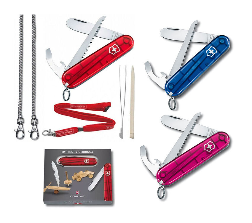 Kids look up to adults with a sense of curiosity and admiration. And no wonder: We have Swiss Army Knives. So when it's time for a young someone in your life to step up, get them a My First Victorinox, the pocket knife created especially for them. We left in nine functions so they can do what they need to do and took the point off the blade to keep them safe.